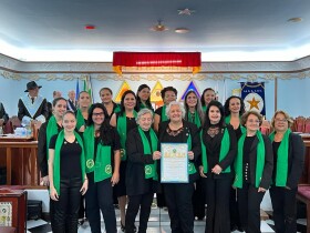 O Venerável Mestre Irmão José Gonçalves Dias, foi homenageado com o Diploma e Medalha Laelso Rodrigues, entregue pelo Grão Mestre Estadual Irmão Celestino Laurindo Júnior.