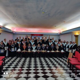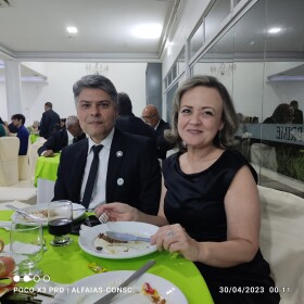 Após a Sessão, houve um jantar de confraternização e recepção dos novatos, onde os irmãos da Loja e seus familiares foram apresentados para os dois novos irmãos e suas famílias, sendo que as novas cunhadas Maria Eletícia (Maurício) e Wilma (Mozanei) receberam flores que simbolizam a acolhida na família Athamaril Saldanha.