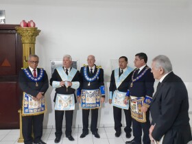Sob a direção do Venerável Mestre irmão LUIZ CARLOS PERALTA, e com a presença de cerca de cinquenta irmãos de Lojas de Campo Grande, Corumbá, Ladário, Ribas do Rio Pardo, Costa Rica, Sidrolândia e Santa Cruz de la Sierra, em especial do Grão Mestre Celestino Laurindo Junior e sua comitiva, o Grão Mestre eleito DAVI DA SILVA RIBEIRO e ainda uma delegação boliviana, liderada pelo Grão Mestre RODRIGO ARCE OROPEZA da Grande Loja da Bolívia.