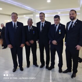 Em seguida houve algumas homenagens, sendo que o Grão Mestre Celestino entregou ao irmão JOAQUIM ALVES VIEIRA e ao irmão LUIZ YOSHIHARU YOSHIMURA respectivamente os Diplomas e Medalhas da Estrela da Distinção Maçônica e logo após, ao Grão Mestre da Bolívia irmão RODRIGO ARCE OROPEZA e ao Secretário Geral de Relações Exteriores JULIO CESAR SUAREZ CUELLAR o título de Membro Honorário do Grande Oriente do Brasil – Mato Grosso do Sul.